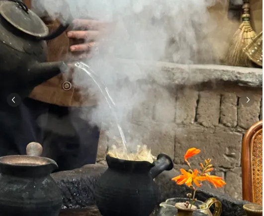 后赠送品尝【腾冲马帮特色-雷响茶】马帮烤茶也称为雷响茶,沸水倾泻而下冲开茶叶发出闷雷般的响声。从前行走在茶马古道的商人们在休息整顿时,会架起炉火来烤制茶水,将糯米放入陶罐烘烤至发黄且溢出香气,再加入茶叶和沸水,糯米可以中和茶里的寒凉,茶汤偏苦,但喝完再饮白水,非常回甘。