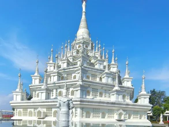 ★游览【勐焕银塔】(游览时间约60分钟左右)银塔整体小于金塔,但由于银塔所在山峰高于金塔约20米,因此最终从视觉上两塔高度相当。建成后的大银塔将与大金塔遥相呼应,形成一道别致的风景。塔高66米、直径46米。塔现已完成。大银塔与大金塔遥相呼应 (两塔间直线距离千余米),一道成为芒市的标志性建筑。