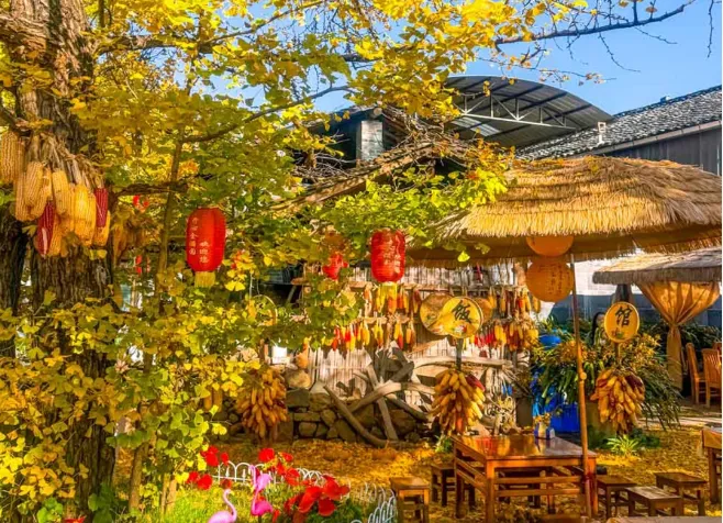 午餐后乘车前往腾冲,前往【银杏村】(包含电瓶车),有人说“没有在秋天去看过银杏的人,不足以谈秋天。”秋日时节,这里漫天黄叶飞舞,宛如一场黄金雨,落在石墙上、屋瓦间、小巷上、田埂间、院落里,筑建起专属的梦幻般的童话世界。在层林尽染间坐下,享受和乐悠闲的时光。 (10月20号-12月20号期间,属于腾冲银杏村最美季节)