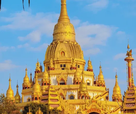 昆明进出:酒店内享用早餐,后乘坐动车前往保山,抵达后驱车前往芒市。 芒市进出:早餐后自由活动(午餐自理),等昆明的客人抵达芒市。 后前往位于德宏州潞西市城东南南传佛教第一塔之称的【勐焕大金塔】(游览时间约60分钟左右) 、勐焕大金塔是中国第一金佛塔,亚洲第一空心佛塔,座落在芒市东南部孔雀湖畔的雷牙让山顶。青山绿水间的"勐焕大金塔"金光灿灿,光彩夺目,雄伟壮观,更显神圣。是芒市标志性的建筑,也是生活在这里的傣族人民的圣地。